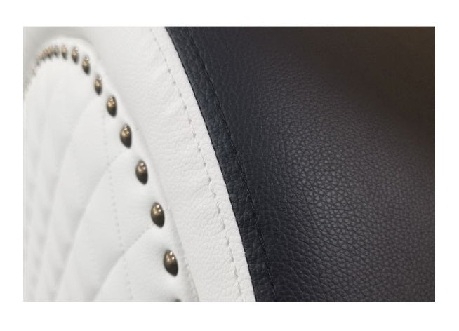 Premium Love Lounge finished in a matt black top with studded and quilted white sides in high-end, tough, easy care, Faux Leather PU fabric.