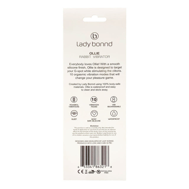 Created by Lady Bonnd using 100% body-safe materials. Ollie is waterproof and easy to clean and store away.
