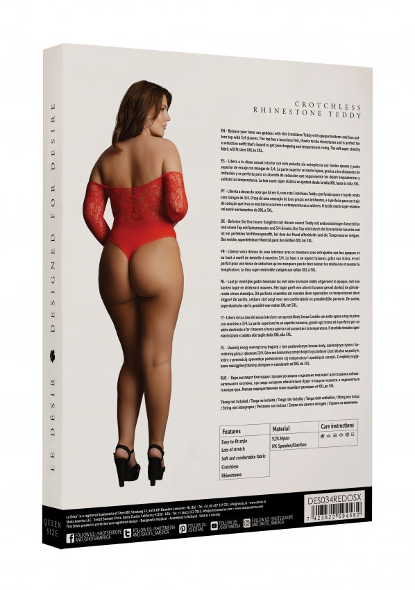 Le Desir Collection Crotchless Rhinestone Teddy Red Size OSX