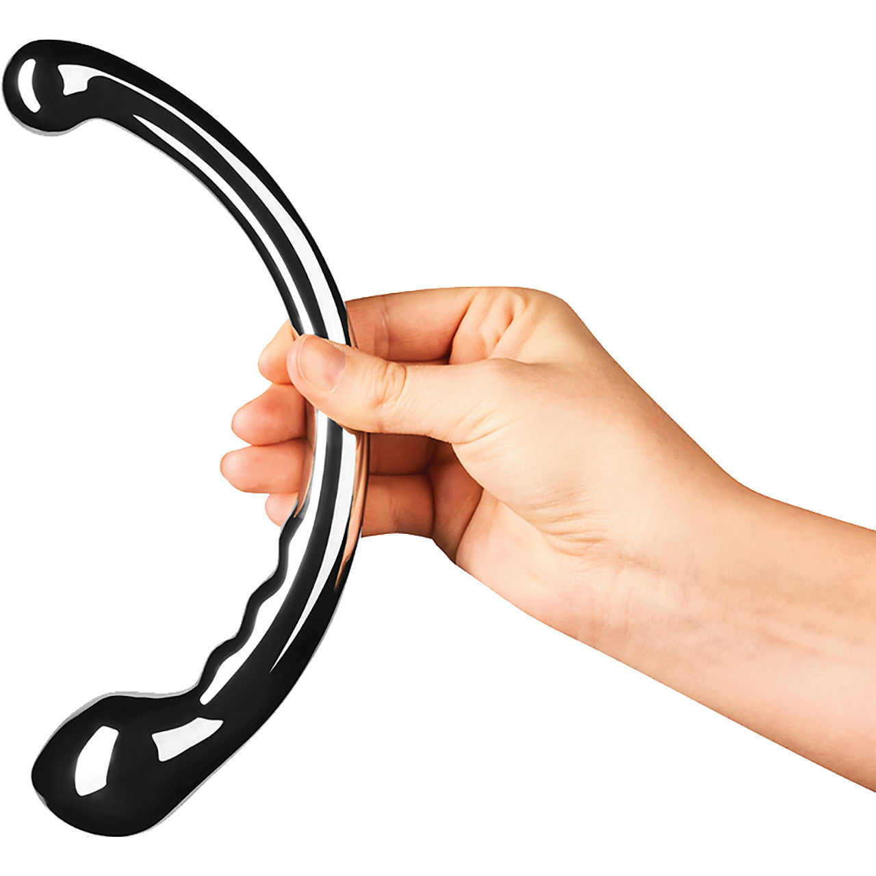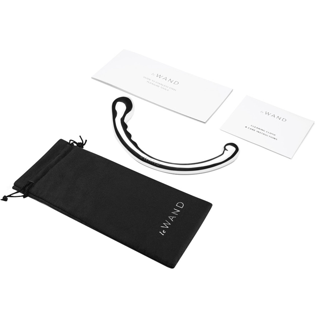 Lay back and relish in the depths of pleasure by yourself or with your partner with the Le Wand Hoop. The perfect curvature and ample reach of this stainless steel wand will leave you in awe with its satisfying weight and pressure. Allow the Hoop wand to firmly caress your pleasure spots in all the right way, the Hoop features a beginner-friendly, easy-to-insert small bulb and a larger bulbous teardrop end with ripples for an added delightful textured sensation. Both ends are excellent for mind-blowing G-spot and P-spot play.
