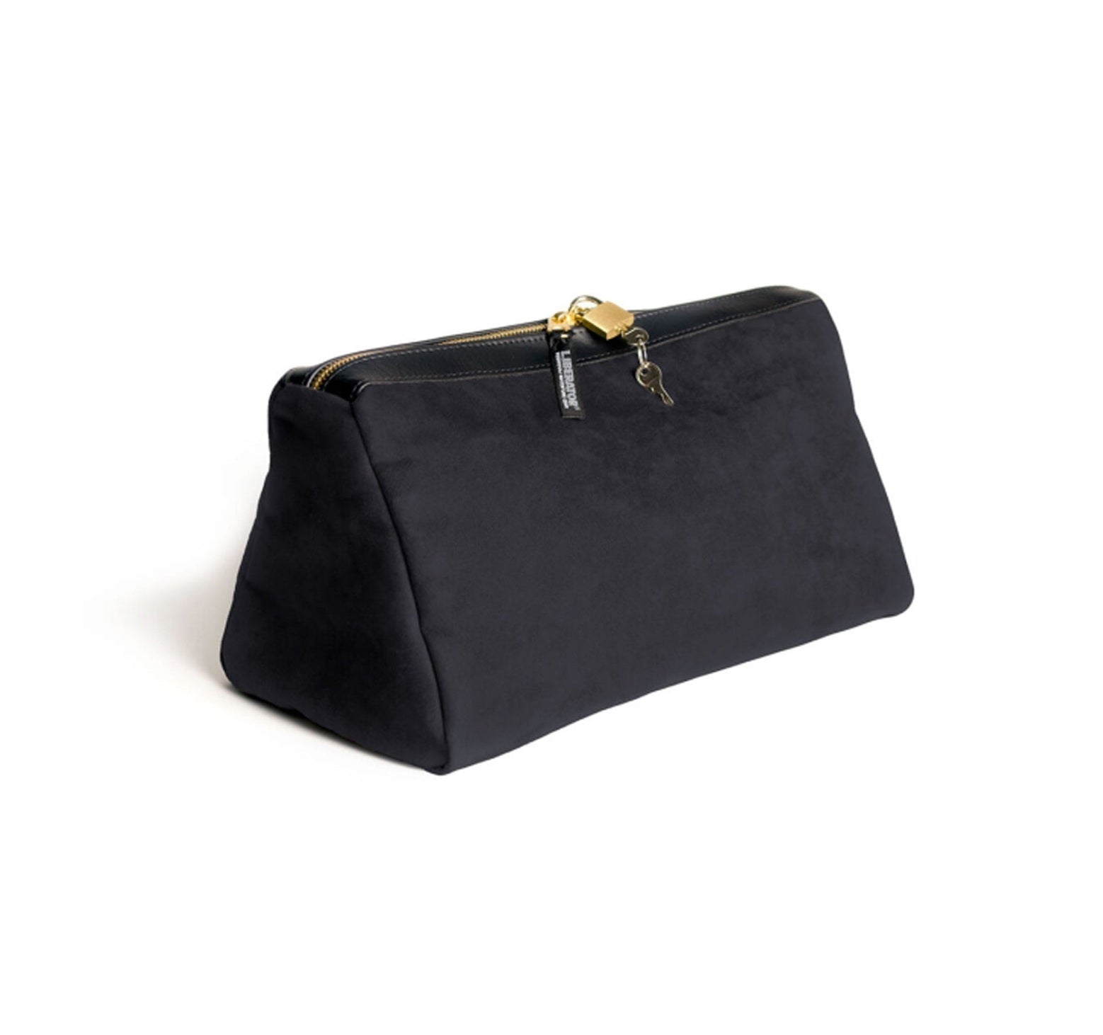 Keep your luxury bedroom accessories from prying eyes with this inconspicuous case. Modeled after the classic dop kit, the new Tallulah Locking Toy Bag keeps your pleasure objects and personal items secret, safe and secure. Crafted from lush, durable microsuede, the case is lined with water-resistant nylon and features a faux leather trim while closing with a handsome, interlocking brass zipper and keyed lock. It's also large enough (13 x 7 x 7) to accommodate almost anything you throw in it. Sit the Tallulah atop a wardrobe or bedside table and feel confident knowing no one's getting into this pleasure chest - until you want them to that is.
