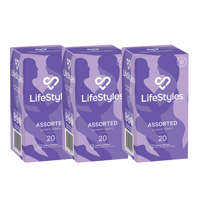 LifeStyles® Assorted condoms provide the ultimate in fun, with a mix of different condoms that may include a combination of colours, textures and flavours.