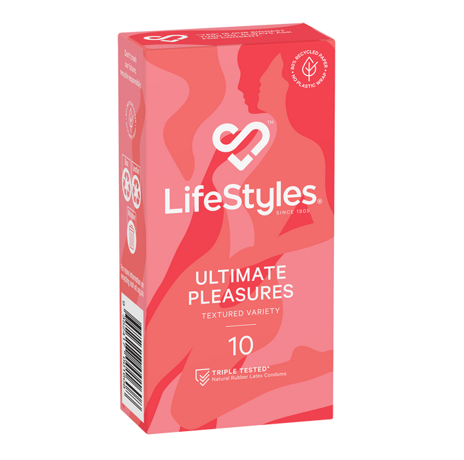 Ultimate Pleasures contain a variety of textured condoms designed to enhance stimulation and pleasure.