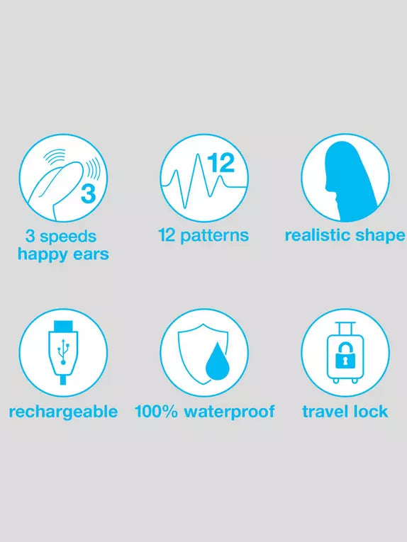 - A powerful motor sends 3 intense speeds through the long ears – happy, happier and happiest!