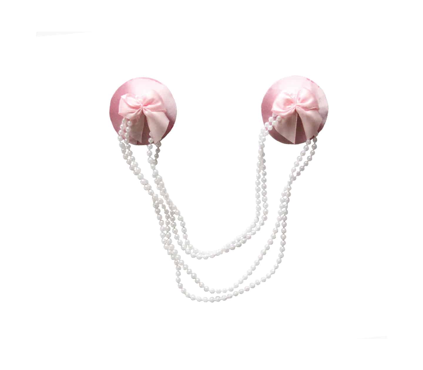 Satin pasties with bow and beaded chain.