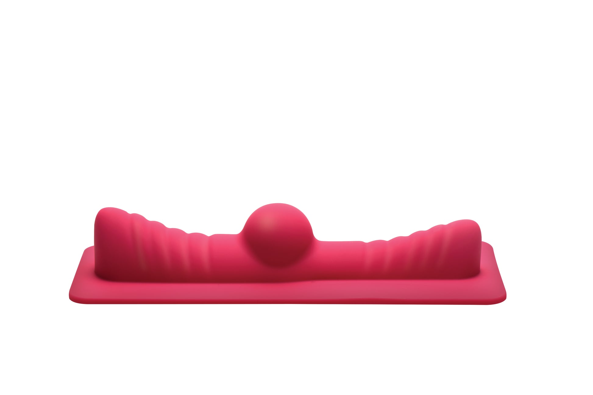 1. Stretch the silicone attachment of your choice over the plastic base on top of the machine. Both ends of the plastic base should be tucked into the pockets under the silicone attachment.