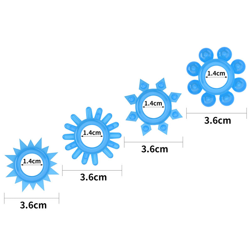Lovetoy Lumino Play Penis Rings 4 Pc Pieces Blue