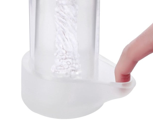Enjoy realistic suction and deep throat stroking action at the same time with the included magic crystal clear silicone sleeve - magnifies the penis, offering unmatched visual stimulation.