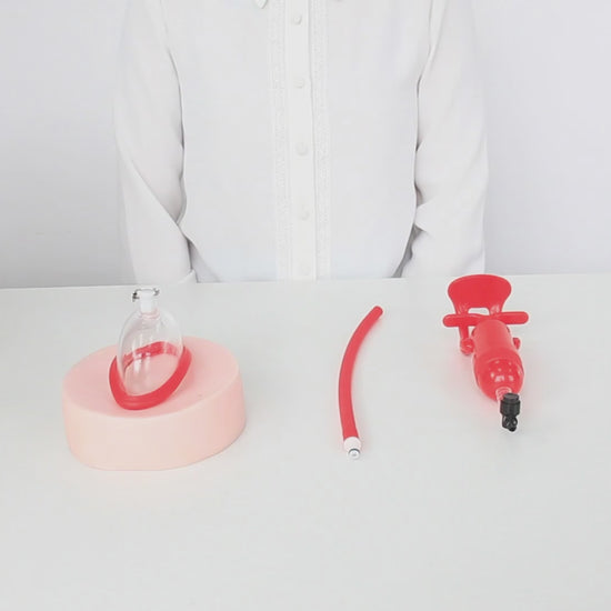 2. Slowly begin to work the pump. There will be slight pressure on your skin as air is drawn from the tube. For beginners, it is important to start this process slowly to avoid discomfort. Remember to press the safety release valve if the pressure becomes too severe.