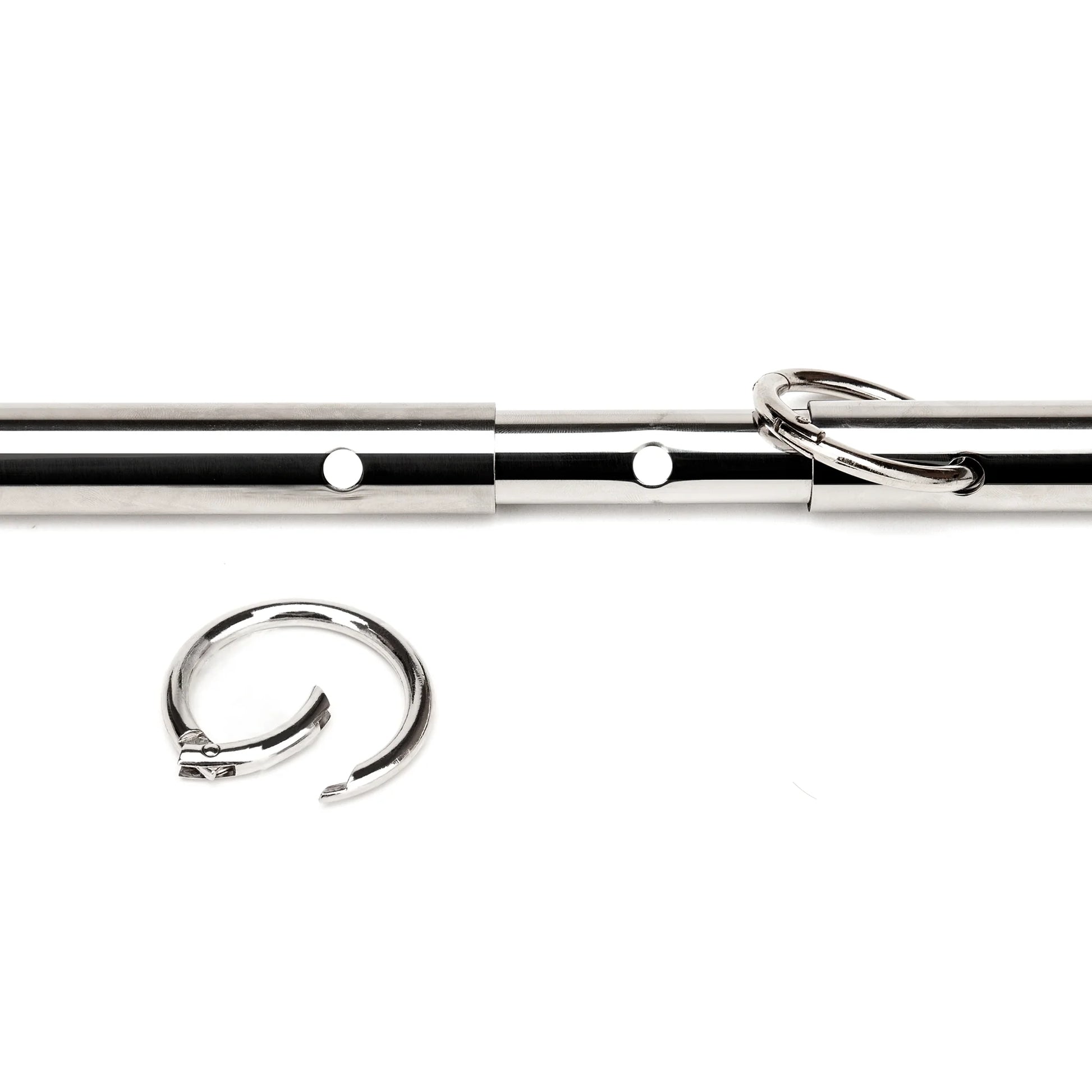 Bring a whole new level of pleasure to your bedroom play with the 4 Cuff Expandable Spreader Bar Set! Get wild, be the boss, and keep your partner secure and comfortable with this clever kinky gear. Easy-to-use quick-release D-rings make access a breeze, and you can make it as wide as you please - giving you all the freedom to explore your passion and play by your own rules. Perfect for all couples and all levels of positions, plus discreet enough to stow away when you're done. Let's get it on!