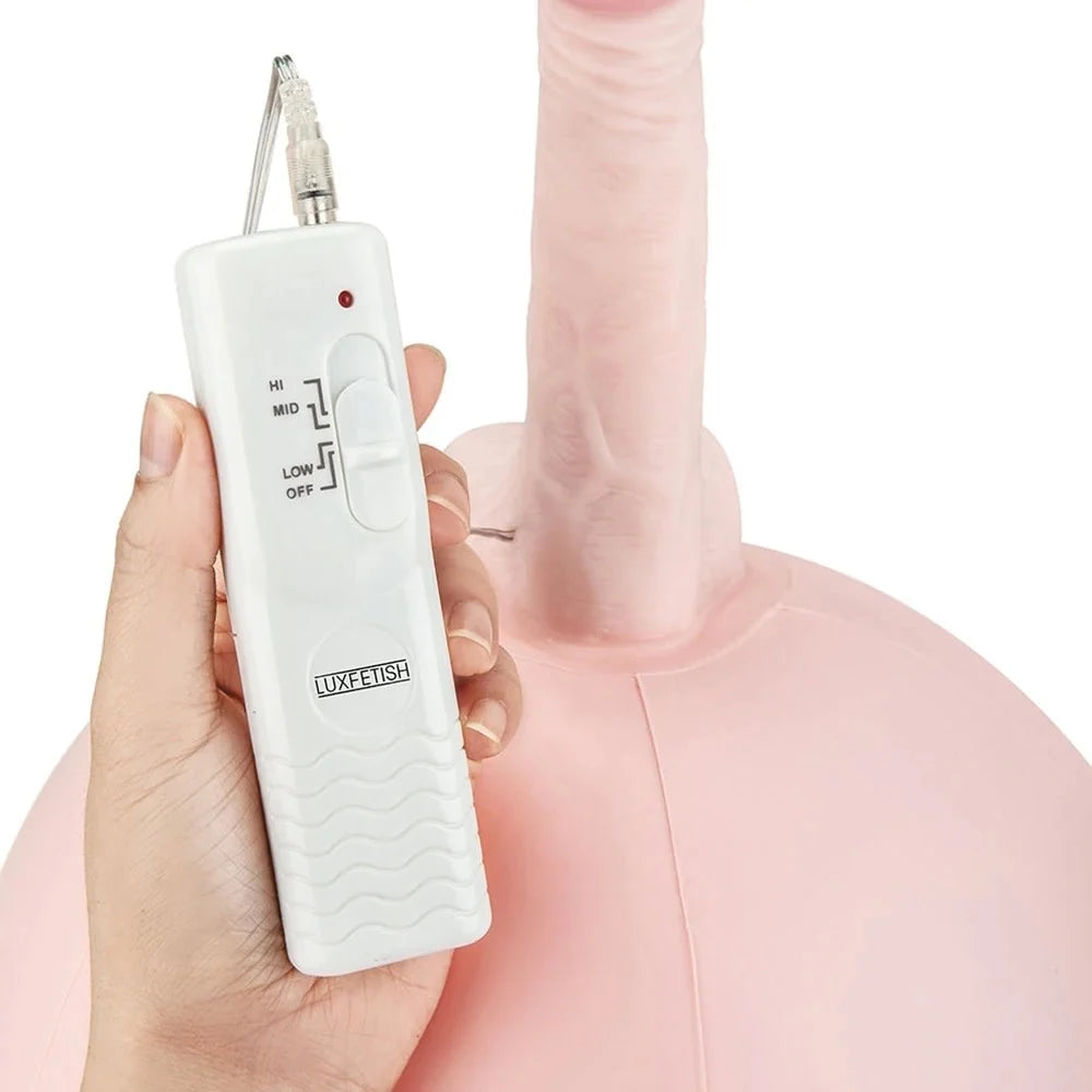 Have a ball on the Inflatable Sex Ball With a Vibrating Realistic Dildo from Lux Fetish. Featuring an erect, realistic-looking dildo that is perfectly sized to deliver deep stimulation, this uniquely shaped pleasure device invites you to hop on! Control the vibrations with ease using the handheld wired remote control. A simple dial turn will rev up the vibrations to the speed you crave most. The inflatable sex ball is perfect for straddling and it provides a comfortable cushion for you to bounce up and down on as the lifelike dildo pounds into you, leading to powerful orgasms. With its round base, this ball will stay in place as you bounce your way through mind-blowing orgasms during solo play or with a partner. Additionally, its user-friendly size makes it perfect for first-timers, as well as experienced sex toy users. When playtime is over, this sex ball easily can be deflated for quick and easy storage and travel.