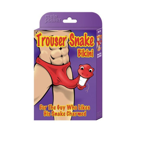 Deadly serious yet also playful, the Novelty Trouser Snake Bikini is always just seconds away from a venomous encounter. Open mouthed with tongue hanging out surely mean hours of slinking and slithering. Stretchy polyester-spandex blend keeps you comfortable when hunting prey.