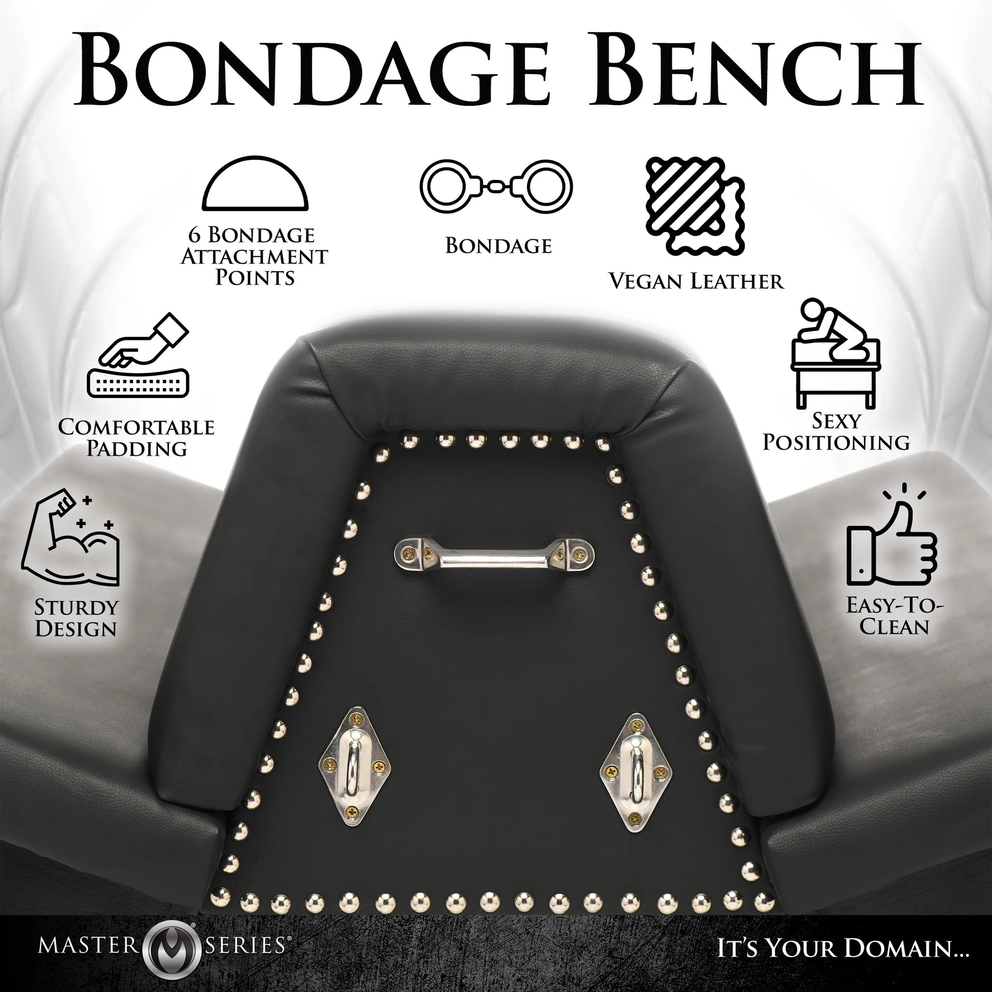 Transform your space by adding a classic bondage bench as the centerpiece of your pleasure. The classic design and smooth, black, vegan friendly leather with bold metal accents stand out and invite you to give in to your darker desires. The smooth faux leather feels divine against bare skin as you indulge in devious play with your partner! Restrain them to the bench with cuffs that attach to any of the 6 attachment points. Tease and torment your submissive to your hearts delight by introducing different impact toys and play! This sturdy, wood and metal bench can handle up to 660 lbs so you both can hop on and enjoy each other. The padded cushions make it comfortable for you both to kneel, straddle or sit for sexy scenes! After play, simply wipe it clean until next time. All metal is nickel-free for sensitive skin.