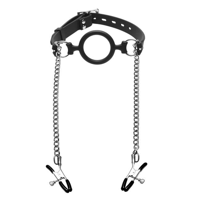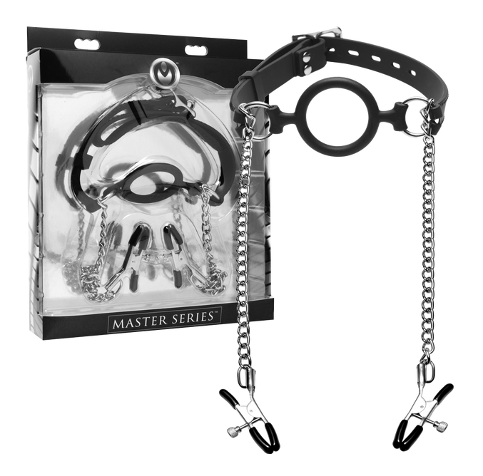 Master Series Mutiny Silicone O-Ring Gag With Nipple Clamps