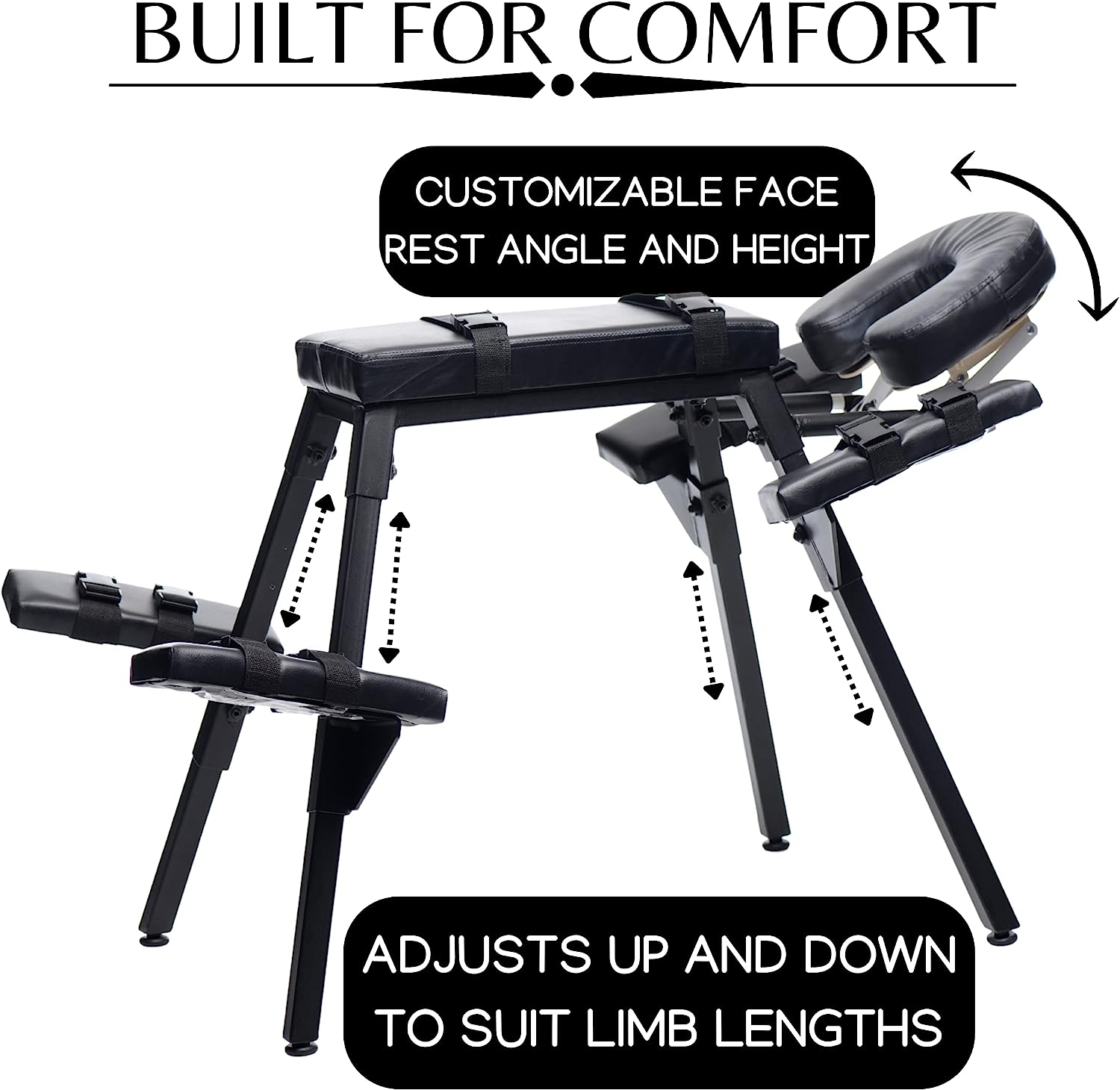 Act out dark fantasies or prepare for intense impact play scenes when you strap your lover into the Obedience Extreme Sex Bench! This heavy duty piece of sex furniture is made of sturdy steel, with comfortable padding for the body, legs, arms, and head of your partner so that you can play vigorously for hours. Keep your sub helpless and at your mercy! This ergonomically shaped bench will leave them exposed for spankings, penetration, or both. You will even be able to go deeper than ever before! The U-shaped headrest wont muffle their moans and squeals as you play. Play without the straps, or keep them fully restrained. The quick release buckles are easy to use. Adjust the height of the arms and legs, or remove the head support to fully customize the experience.