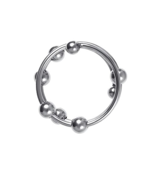Multiple metal balls placed on the bridle of the penis stimulates arousal by directly massaging the area of the largest accumulation of nerve endings.