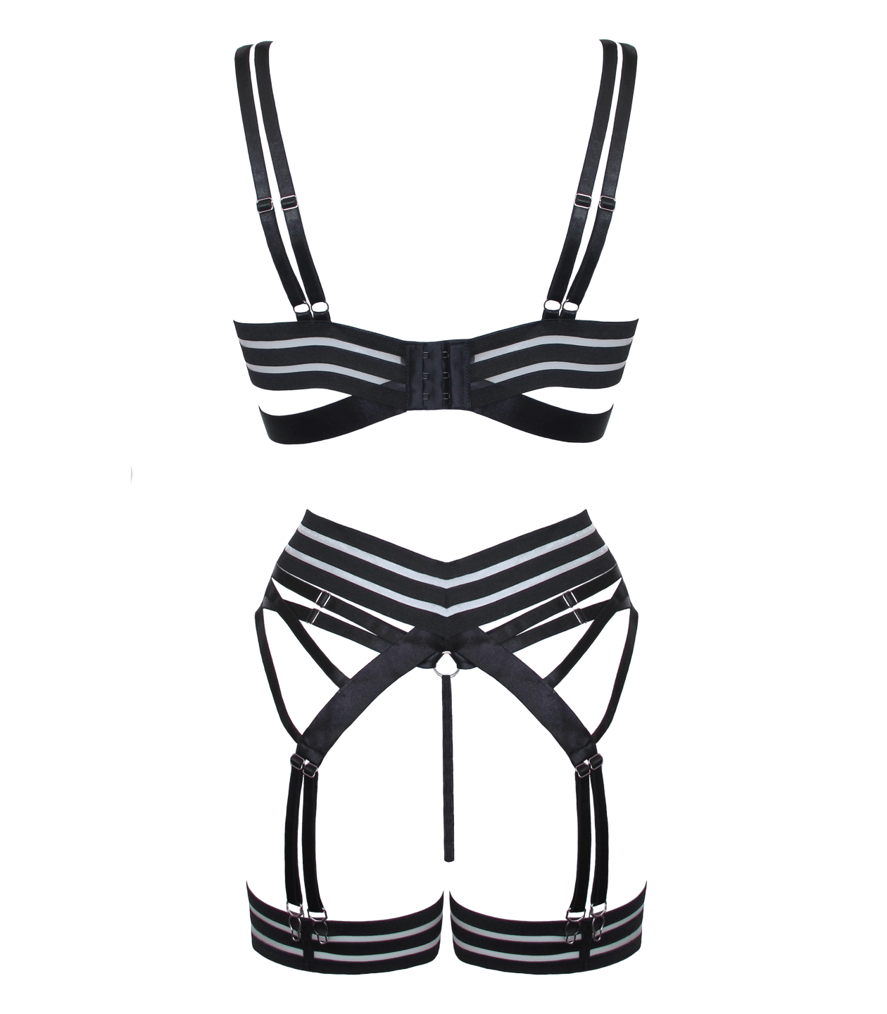 - 4/5 Pieces, bra, gstring, garter belt, two leg straps