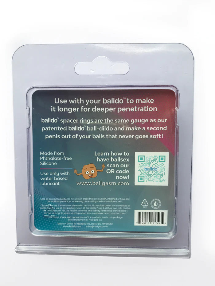 The aim of the game is to make your Balldo or Viballdo as rigid as possible for penetration by using the spacer rings to brace the Balldo or Viballdo against your abdomen - making it stiff like an erection. Whether it be one - or ten rings (yes we have seen ten!) The single spacer rings add an extra dimension to how your balls feel and how deep they can penetrate.
