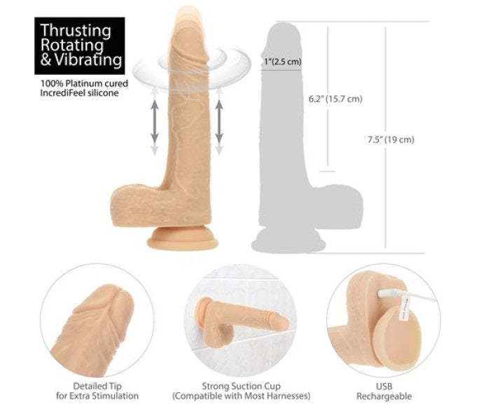 Naked Addiction | The Freak Vibrating Rotating Dong w Remote 7.5" Flesh