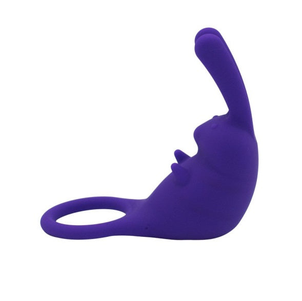 The Cock Hopper is a cock ring and rabbit bullet vibrator. Targeted for external stimulation, this toy can be used for penis & scrotum stimulation or penis & clitoral stimulation. The Cock Hopper can also be used as a standard bullet anywhere on the body with the twin tip rabbit ears, as a grinding toy or a palm toy for anyone with grip issues. Place The Cock Hopper on the base of a dildo or vibrator for heightened sensations. The limits truly are endless with this multi-function toy!