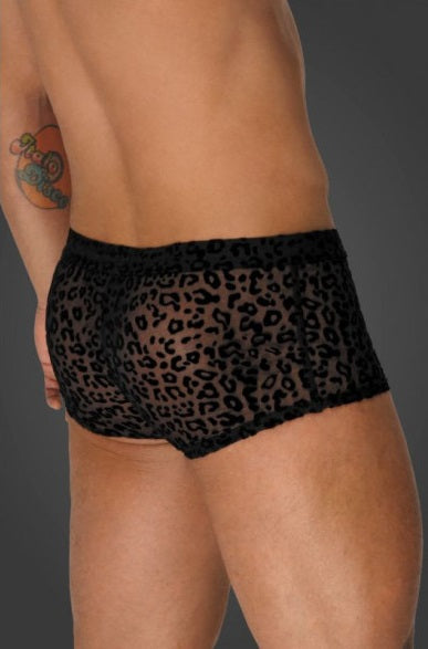 Leopard flock booty shorts for men. When you want to walk on the wild side and show some skin, and with no buttons or zippers to be bothered with.