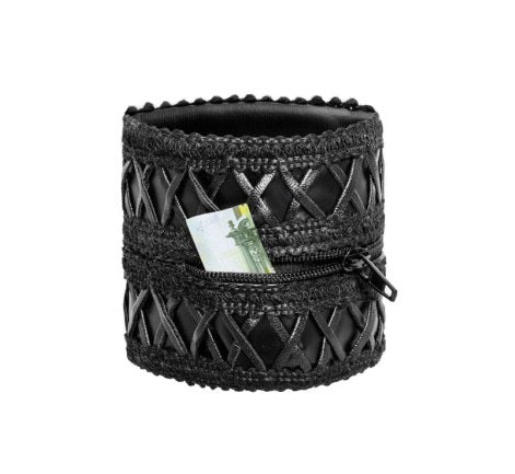 The chic design features decorative elements sewn onto the material, elevating your outfit with a touch of sophistication. The wrist wallet boasts a discreet hidden zipper, allowing you to securely store small essentials like money and keys.