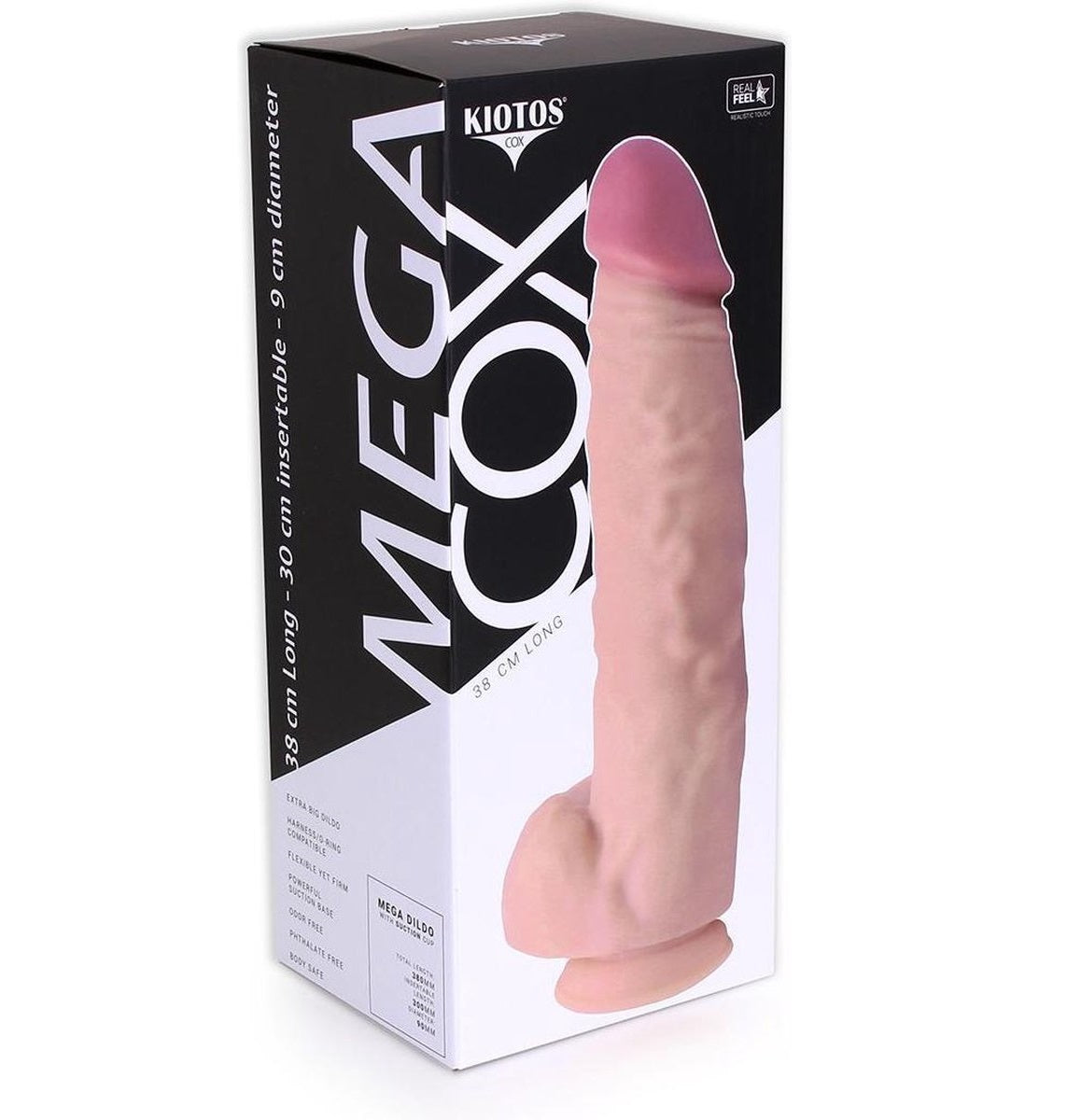 The Kiotos COX MEGA can be used with water-based lubricants, is waterproof, 100% Phthalate free, odor-free and body safe. A Kiotos COX MEGA dildo is sold in a firm BOX.