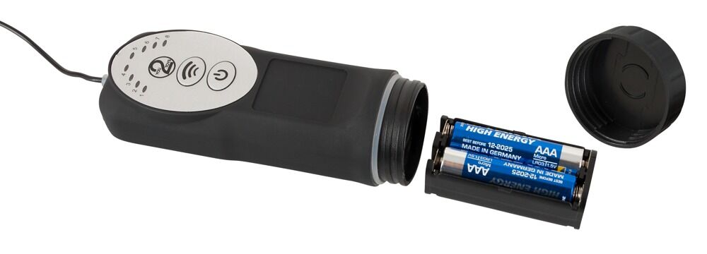 This realistic vibrator stands out with its extraordinarily intense rotating thrusting and vibration functions in 8 modes, which can be easily controlled with the remote control on a wire. It feels almost like the real thing because of its realistic, pronounced glans, veins and testicles. The suction cup makes hands-free pleasure possible. Please order batteries separately (4 x AAA).