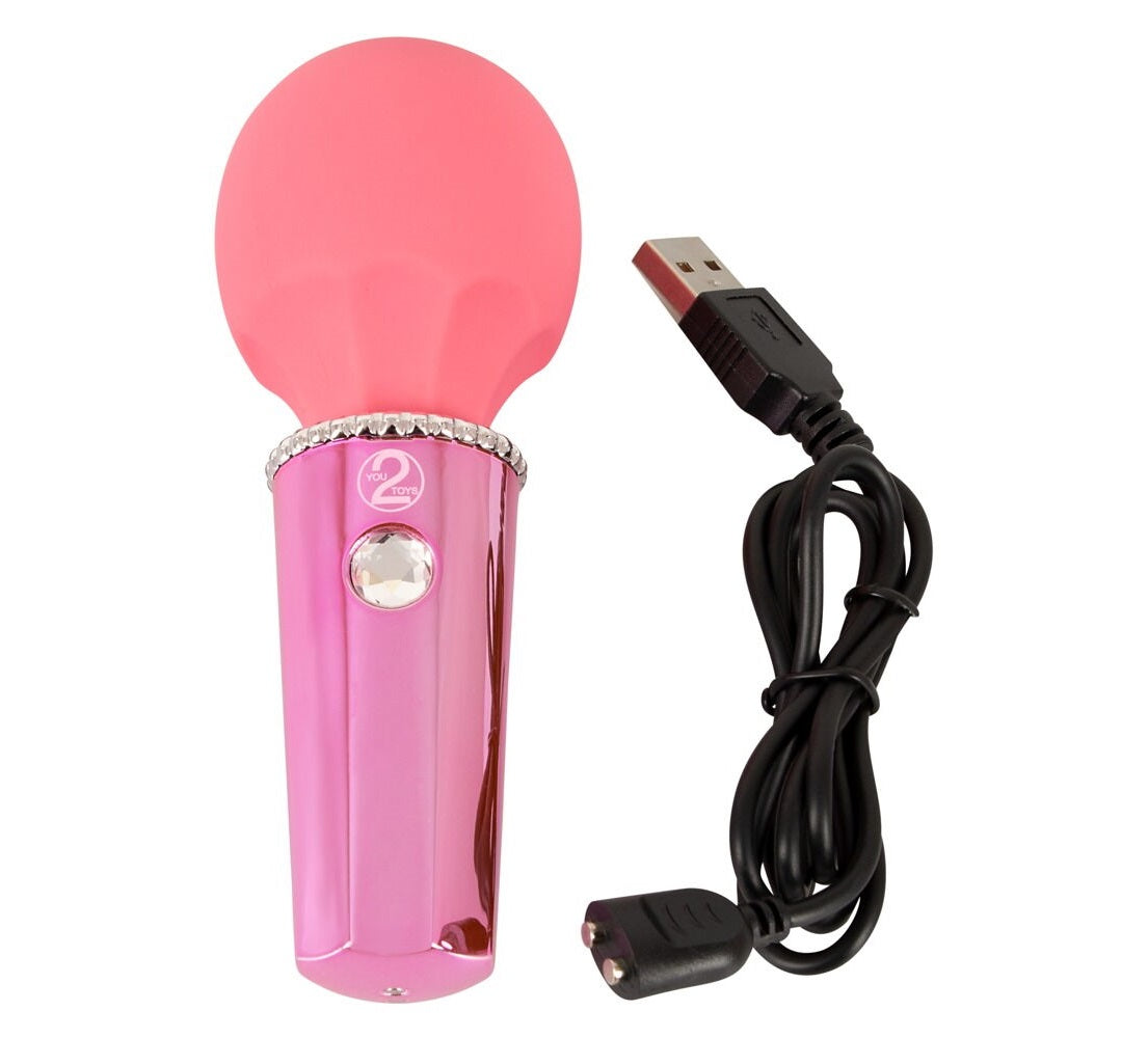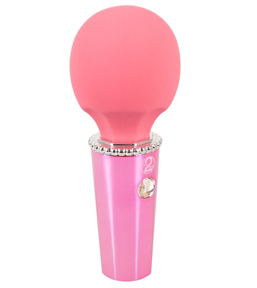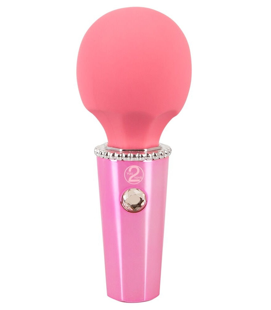Small & compact massage wand Mini Wand Berry from You2Toys in a fruity, fresh sorbet colour and elegant metallic look with a sparkling glitter stone as a control button. With its flexible, silky soft massage head, it is suitable for both long massages and precise stimulation.