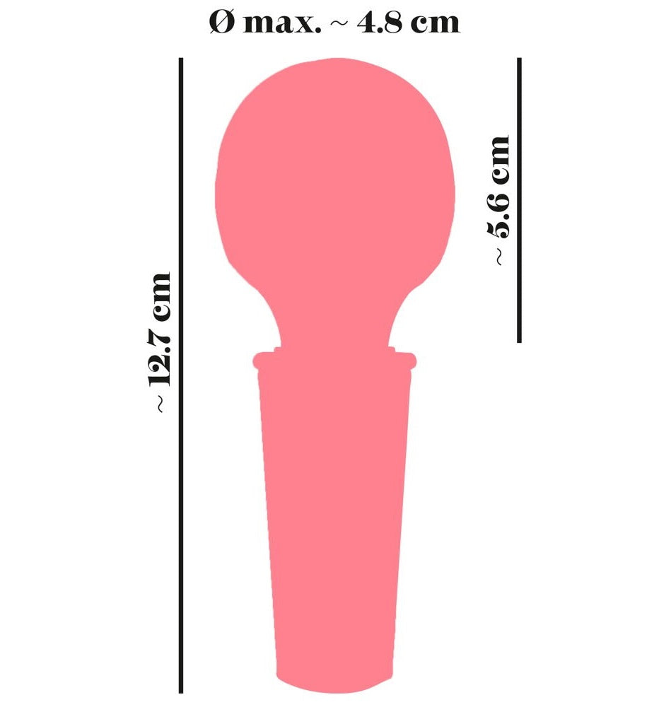 Total length 12.7 cm, massage head 5.6 cm long, Ø max. 4.8 cm.