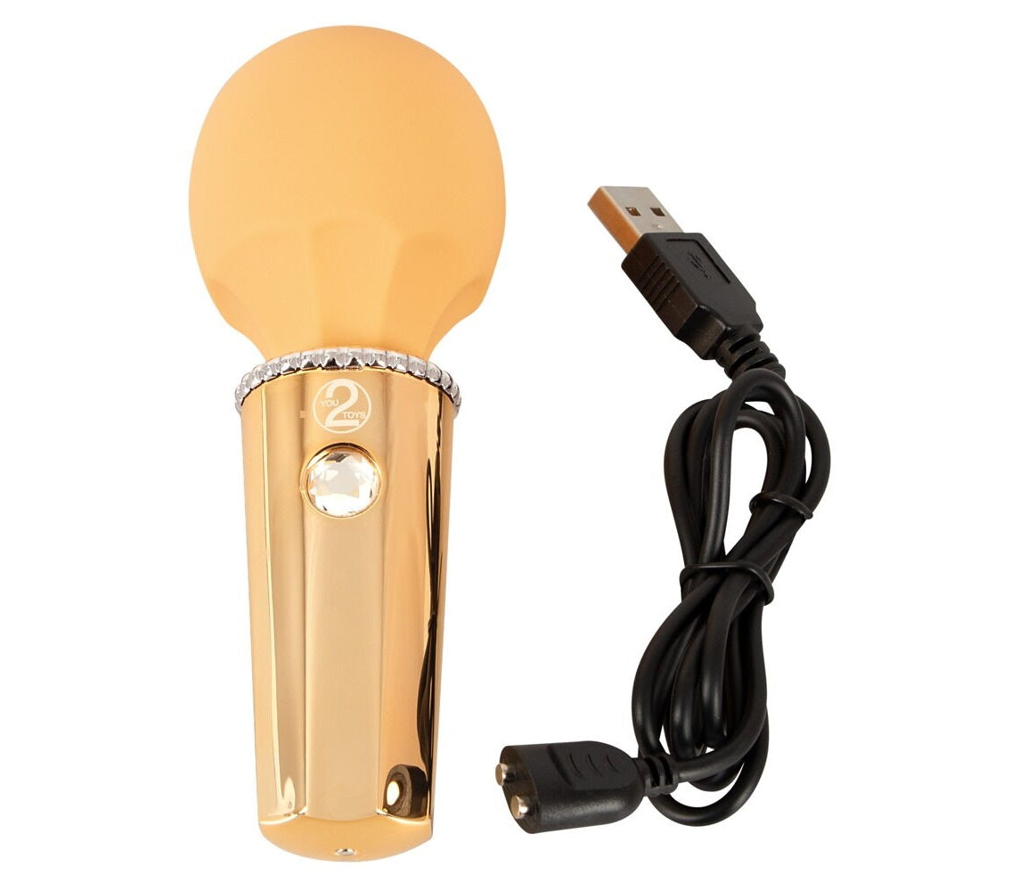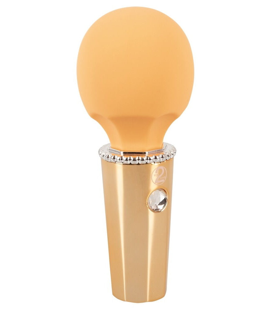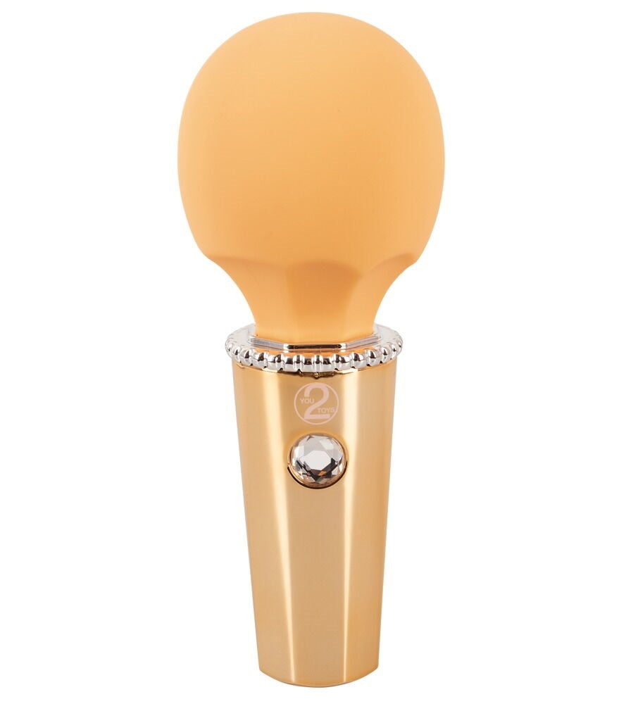 Small & compact massage wand Mini Wand Berry from You2Toys in a fruity, fresh sorbet colour and elegant metallic look with a sparkling glitter stone as a control button. With its flexible, silky soft massage head, it is suitable for both long massages and precise stimulation.