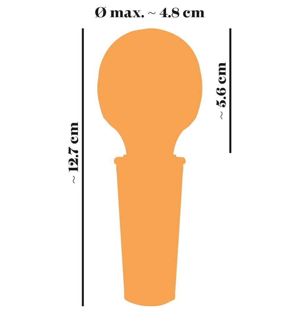 Total length 12.7 cm, massage head 5.6 cm long, Ø max. 4.8 cm.