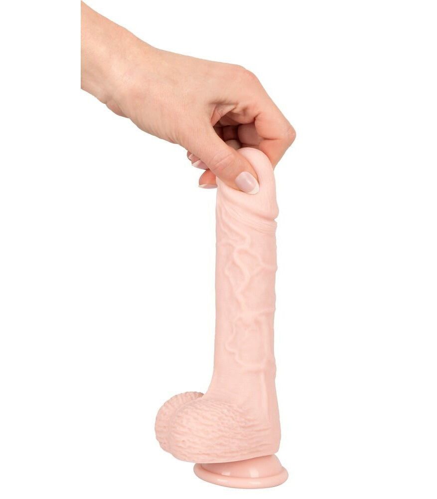 The realistic, rotating, thrusting and vibrating toy is also made out of seamless, non-porous Liquid Silicone. It looks and feels extremely realistic. The very soft surface slides over the skin and into the intimate areas almost on its own.