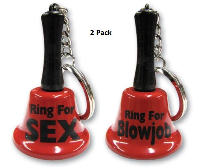 Ozze Creations | Ring For Sex + Ring For Blowjob Mini Bell Keychain - 2 Pack