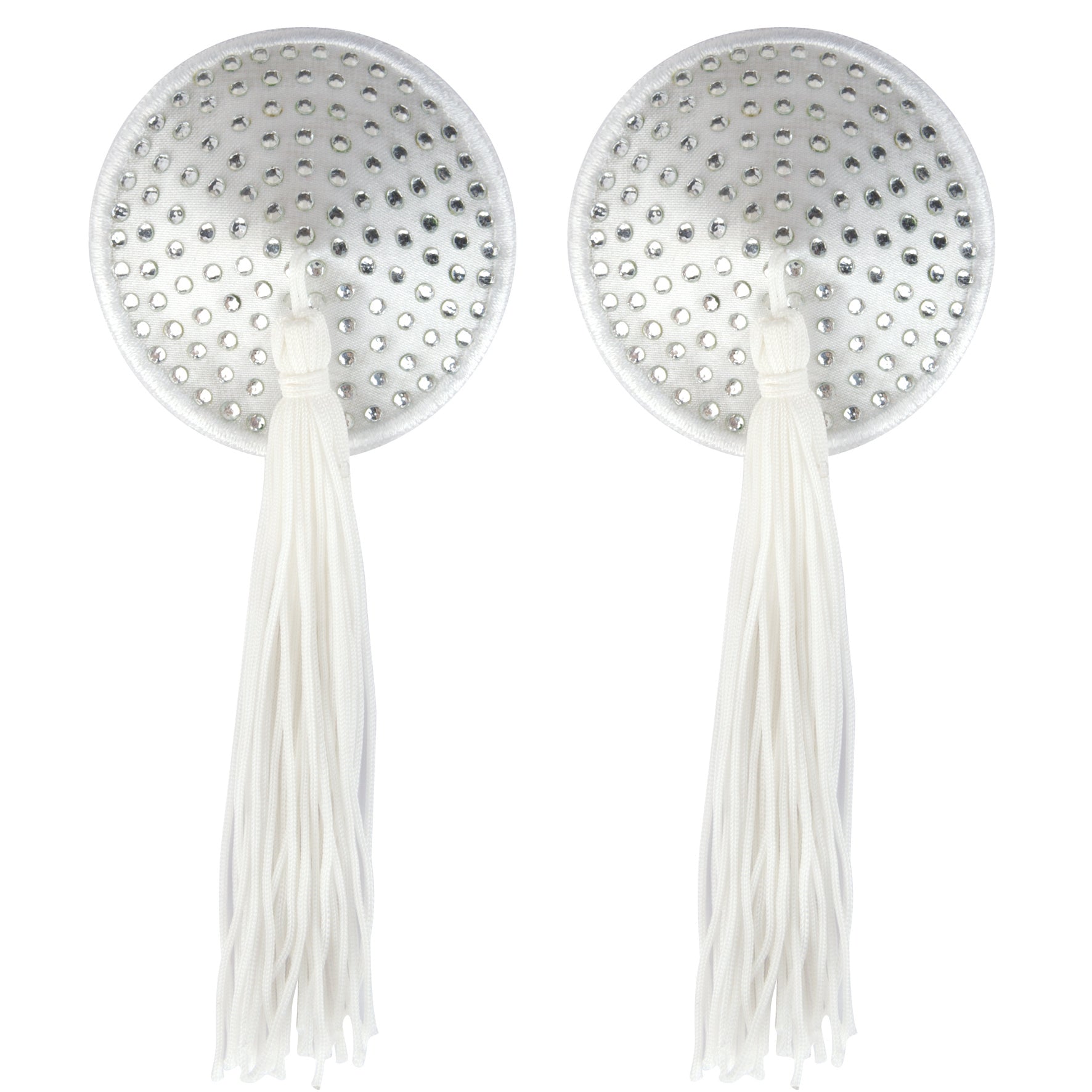 Peekaboo Pasties | White Satin w White Stone and Tassel Pastie