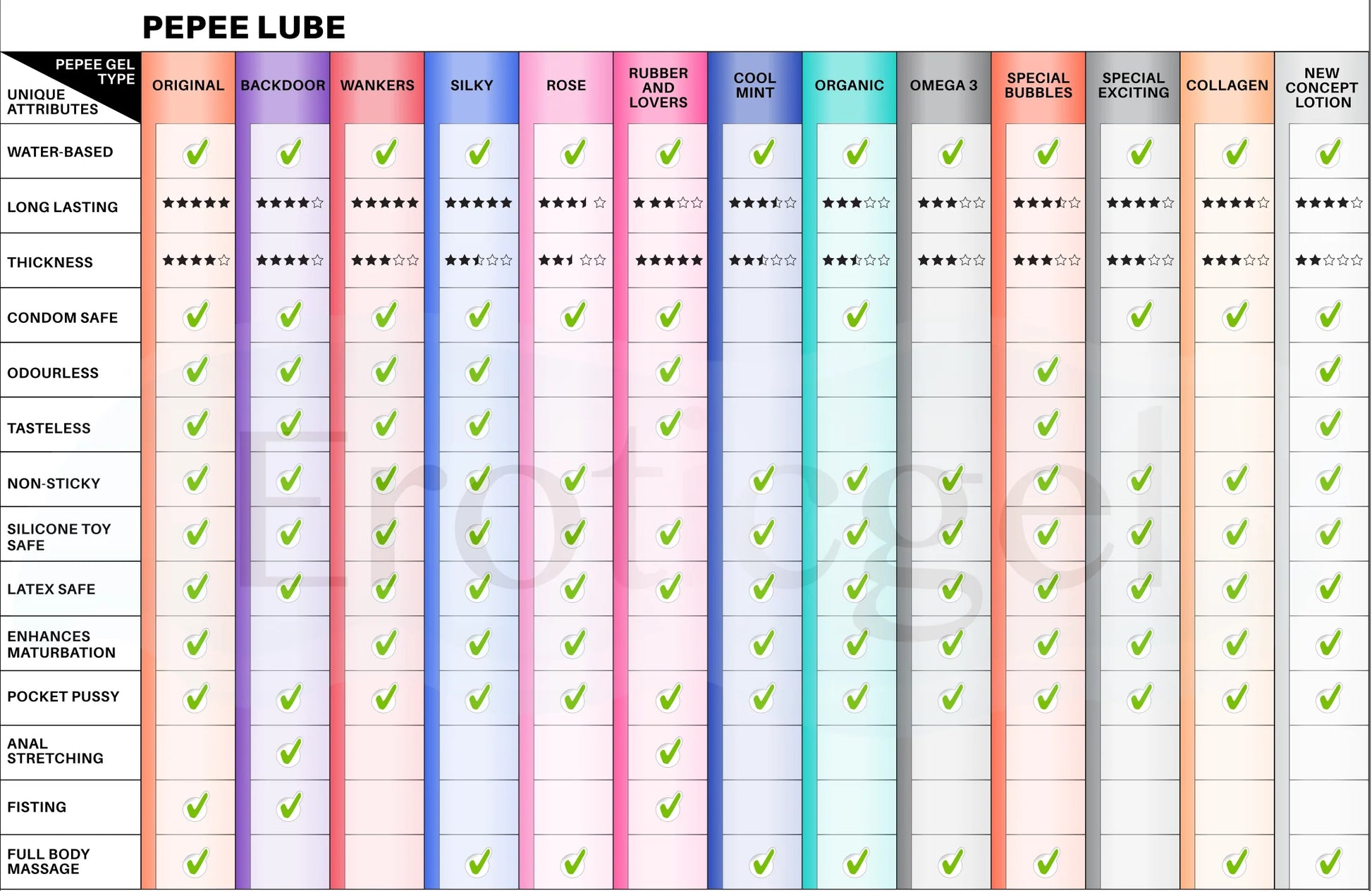 Non-staining, easy to clean: Pure, water-based lubricants offer the most effortless cleanup of any sexual lotion, washing off quickly with water. Enjoy the Pepee Experience
