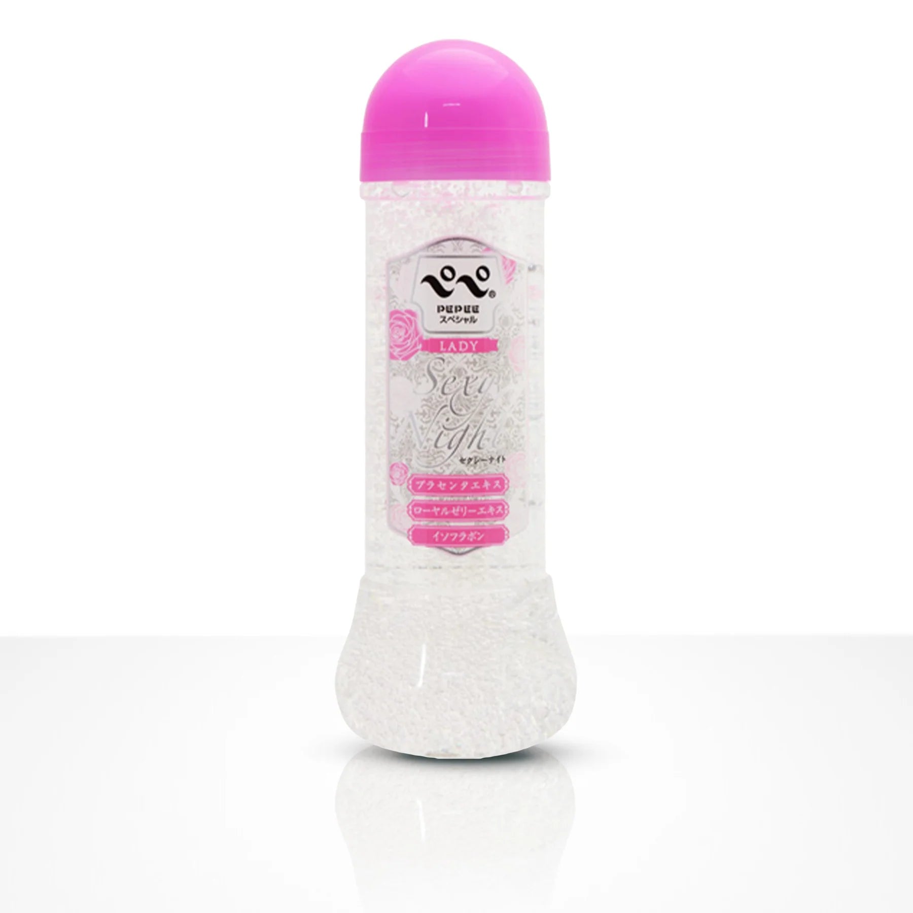 Experience a night of heightened sensuality with PEPEE's Sexy Night Lotion, a tantalizing variation of the renowned Pepee Original lotion. This unique formulation contains a blend of Placenta, Royal Jelly, and Glycine Soja Extract, known for their antioxidant and anti-aging properties, offering a dual benefit for your skin and mind.