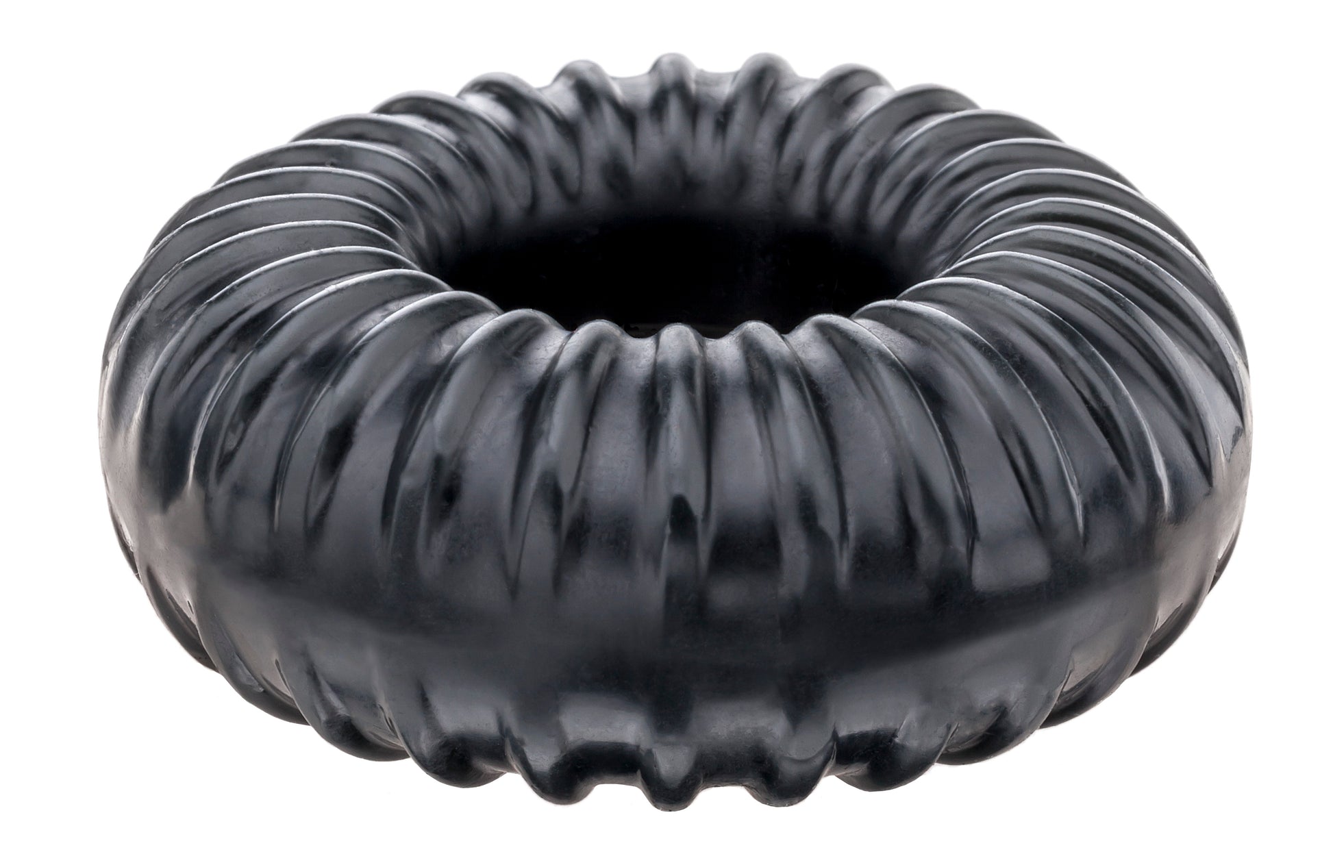 Never mind those cheap flimsy cock rings that break after only a few uses, the Ribbed Ring is the new standard for superior long lasting durable cock rings that won't break. They are extremely comfortable to wear, never harsh or scratchy and made with the sensual comfort of PF Blend. It is made with our industry-leading proprietary materials, which makes it a superior long lasting durable ring that is extremely comfortable to wear. The Ribbed Ring is made of PF Blend which is a mixture of Silicone and TPR and is available in black and clear. The Ribbed Ring is safe with water based lubes. This product is not compatible with latex products. Wash thoroughly with mild soap and water.