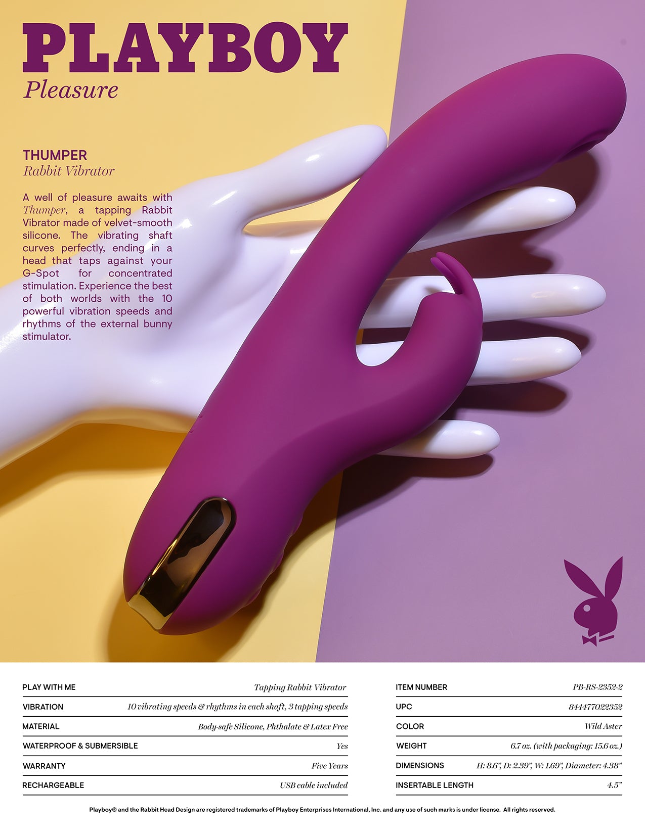 Playboy Pleasure THUMPER Purple 21.9cm USB Rechargeable Rabbit Vibrator