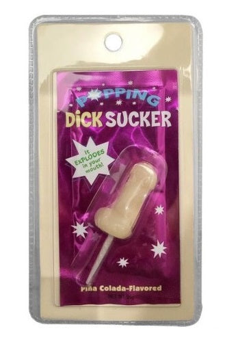 The popping Dick Sucker is a Pina Colada flavoured dick sucker that explodes in your mouth when you dip your sucker into the popping candy included.
