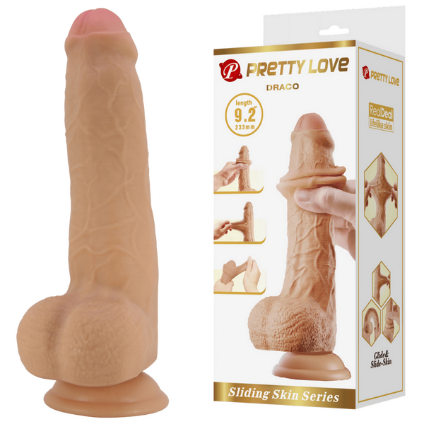 Pretty Love Sliding Skin Series - Draco 9.2" Dildo Flesh