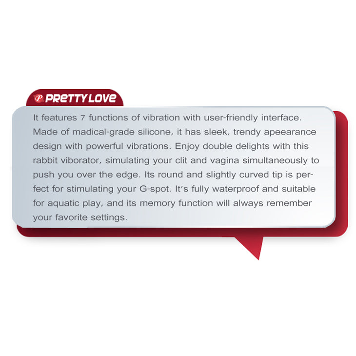 This cosmopolitan design features 7 vibration settings with a user-friendly interface. Made of medical-grade silicone, it has a sleek trendy appearance, designed with powerful vibrations. Enjoy double delights with this rabbit vibrator, stimulating your clit and vagina simultaneously to push you over the edge. Its round and slightly curved tip is perfect for stimulating your G-Spot. It;s fully waterproof and suitable for aquatic play and it's memory function will always remember your favourite settings.