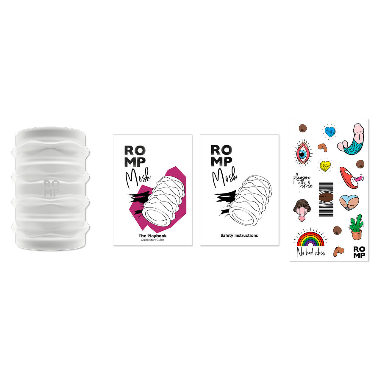 ROMP Mosh is a manual stroker with two different textured pleasure surfaces to heighten masturbation and create a blowjob-like sensation. No batteries, no fuss – just a silky-smooth, slippery feeling, whenever you want it.