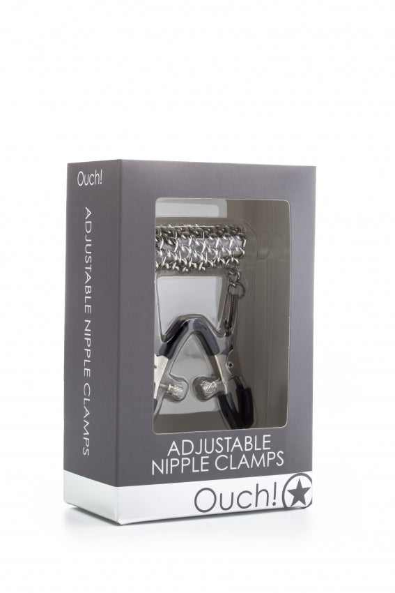 Adjustable Nipple Clamps - Metal These nipple clamps with chain from Ouch! are easy to use and suitable for both him and her. The clamps and chain are made of stainless steel and aluminum, and are completely nickel-free. You can use the nipple clamps for your naughty secrets, or for extra stimulation while making love.