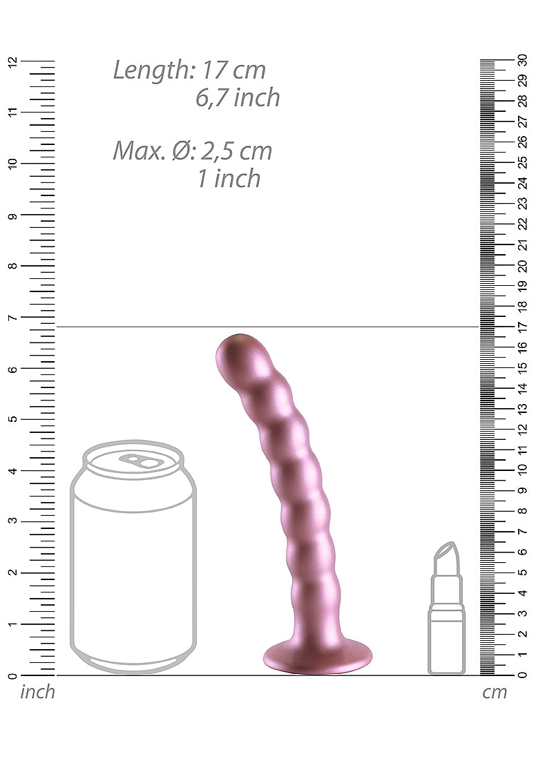 The 6,5" / 16,5 cm Beaded Silicone G-spot Dildo, with its strong suction cup and beautiful metallic color, is in a class of its own. Whether you are going solo, with your partner or even using it with a strap-on, explore new pleasures with these beautiful Ouch! Premium silicone and liquid silicone dildos. Pairs perfectly with the Ouch Strap-on Panties.