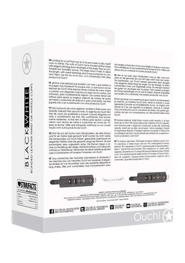 Shots Toys | Ouch! Bonded Leather Hand or Ankle Cuffs - With Adjustable Straps
