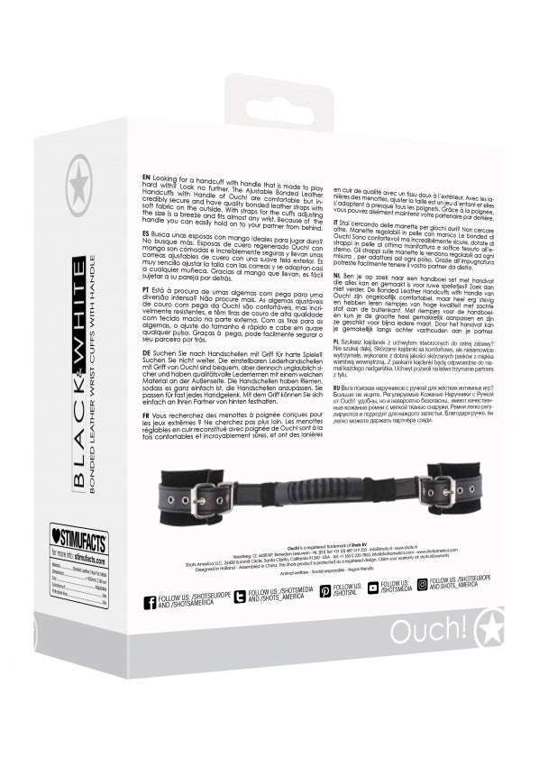 Shots Toys | OUCH! Bonded Leather Handcuffs With Handle - With Adjustable Straps
