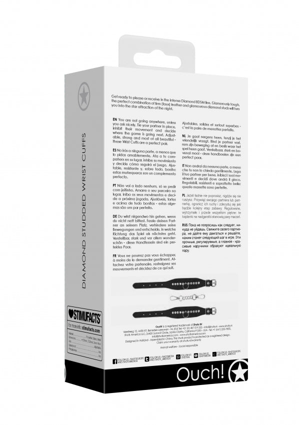 Shots Toys | Ouch! Diamond Studded Wrist Cuffs - Black