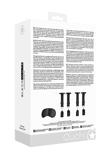 Easily attach to any door to enjoy some bondage fun. Just place the 2 acrylic tubes over the top of any open door, place the other 2 under the bottom, close (and lock for safety) the door. Bind your partner and enjoy. Comes with 4 adjustable tethers, 2 velvet wrist and 2 ankle cuffs, 4 acrylic door jam tubes and a satin eye mask.