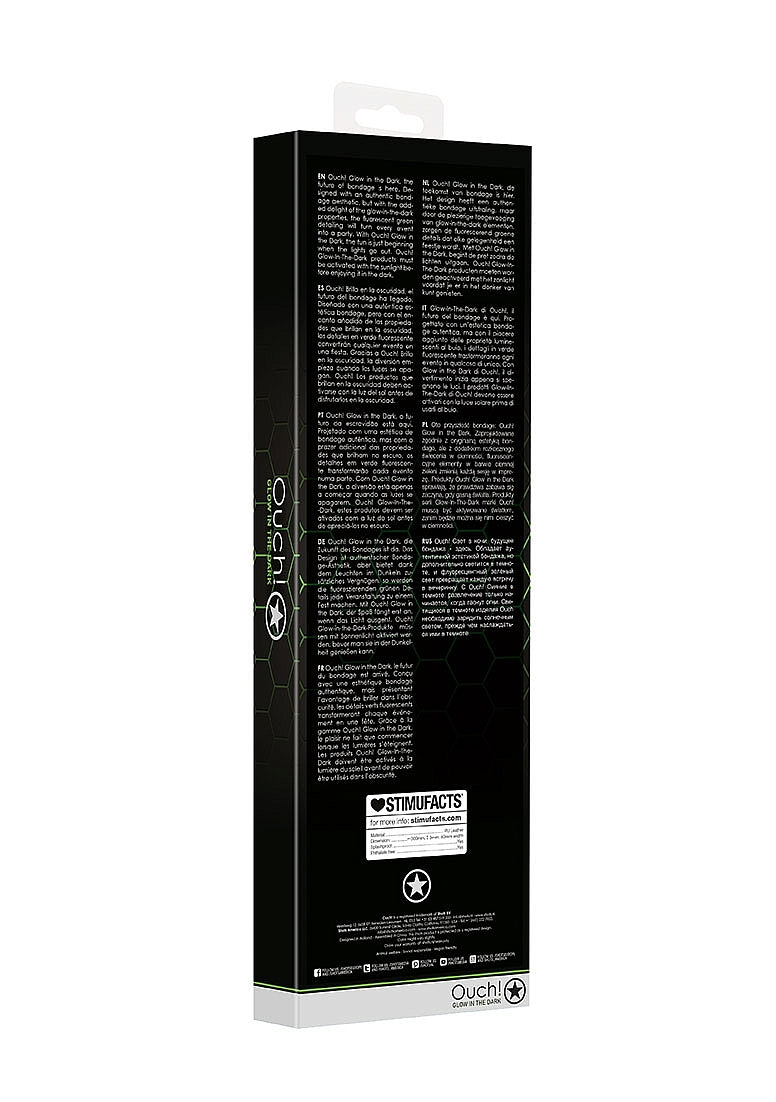 Ouch! Glow in the Dark, the future of bondage is here. Designed with an authentic bondage aesthetic, but with the added delight of the glow-in-the-dark properties, the fluorescent green detailing will turn every event into a part. With Ouch! Glow in the Dark, the fun is just beginning when the lights go out.